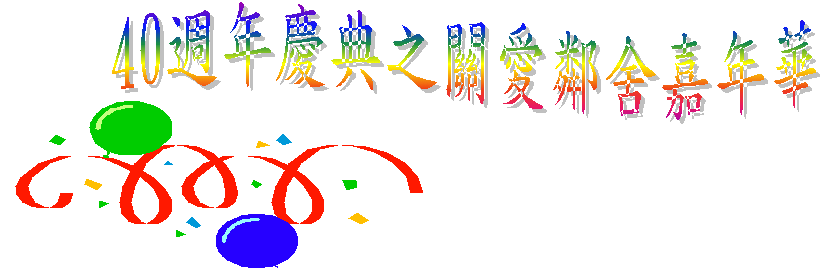 為慶祝本堂成立40週年,特別設立多個刺激好玩攤位遊戲向街坊介紹福音及本堂歷史,豐富獎品換領站、幸運大抽獎及聖經故事卡通播放等。